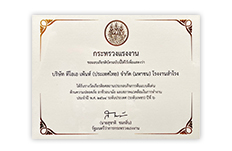 ด้านความปลอดภัย อาชีวอนามัย และสภาพแวดล้อมในการทำงานระดับประเทศ ประจำปี 2565 โรงงานบางนา ระดับเพชร 9 ปีต่อเนื่อง โดยกรมสวัสดิการและคุ้มครองแรงงาน กระทรวงแรงงานกรมโรงงานอุตสาหกรรม กระทรวงอุตสาหกรรม