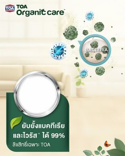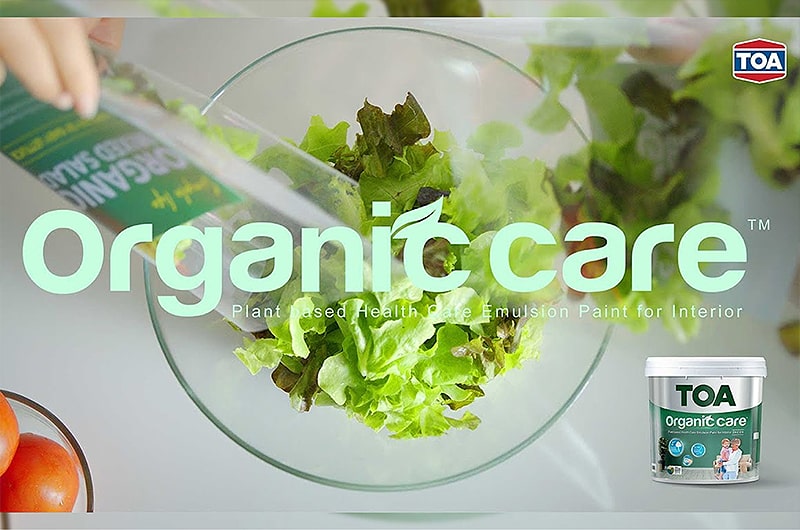 TOA Organic care - Asthma & Allergy Friendly Plant based Emulsion Paint เป็นสีที่พัฒนาขึ้นเป็นพิเศษเพื่อความปลอดภัยที่เหนือกว่าของทุกชีวิตในบ้าน ด้วยเทคโนโลยี Biobased จากสหรัฐอเมริกา ที่ใช้ส่วนผสมจากธรรมชาติ ทดแทนวัตถุดิบจากปิโตรเลียม ปลอดสารก่อภูมิแพ้ ให้กลิ่นอ่อนพิเศษ สารระเหย VOCs 0% ผ่านการรับรองมาตรฐาน BioPreferred จาก USDA สหรัฐอเมริกา รายแรกและรายเดียวในประเทศไทย ให้ความทนทาน การเช็ดล้างที่ยอดเยี่ยม