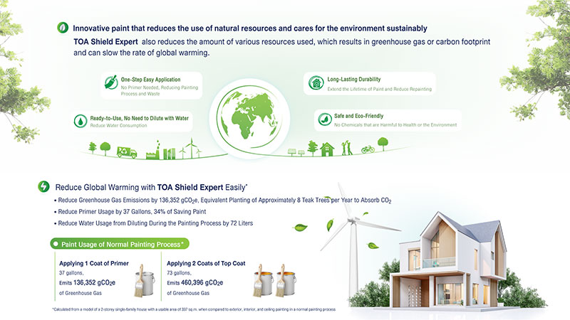 TOA SHIELD EXPERT is a superior premium emulsion paint with an alkali primer for ceiling, formulated from 100% quality acrylic resin combined with Super Bonding 2X Technology. It provides excellent film adhesion. Its super matt finish provides excellent low light reflecting coating and good coverage of ceiling joints. Additionally, making the ceiling look smooth and even. It is free of mercury and lead which is safe for occupants. It can prevent alkali stain as well as alkali primer and mold and bacteria very well. It saves time, paint and cost.