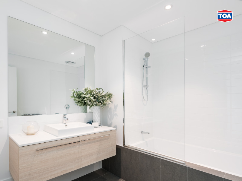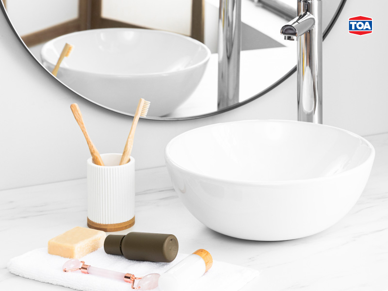 ได้ไอเดียแต่งห้องน้ำสไตล์มินิมอลกันแล้ว TOA เชื่อว่าตอนนี้หลายๆ คนน่าจะเริ่มวางแผนการแต่งห้องน้ำกันแล้ว แต่สำหรับคนที่ต้องการรีโนทเวทห้องน้ำเก่าให้ไหม่ในสไตล์มินิมอล ควรเริ่มจากการเลือกใช้ผลิตภัณฑ์ในการซ่อมแซม ก่อสร้างก่อน โดยเลือกผลิตภัณฑ์ที่ช่วยปกป้องเชื้อรา เพราะห้องน้ำเป็นพื้นที่ที่มีความชื้นสูง เมื่อใช้งานนานๆ อาจจะเกิดแบคทีเรีย คราบสกปรกต่างๆ และส่งผลเสียต่อสุขภาพของคนในบ้านได้