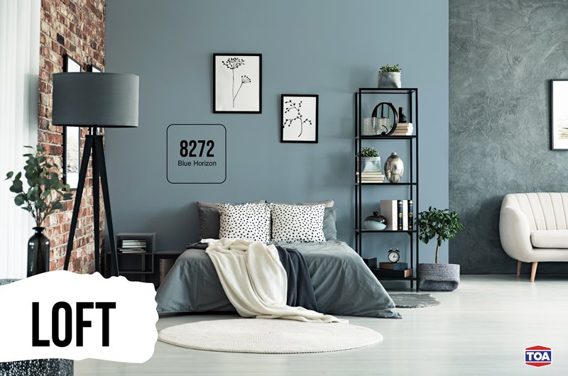 4. คุณแม่สุดฮิปแนวลอฟท์ การโชว์แนวอิฐเปลือย ปูนเปลือยเป็นที่นิยมมากในปัจจุบัน ด้วยรูปแบบที่ดูทันสมัย และไม่ยุ่งยาก สีฟ้าอมเทาที่เข้ากับสีของปูนเปลือยและอิฐแดงได้ดีคือ 8272 Blue Horizon