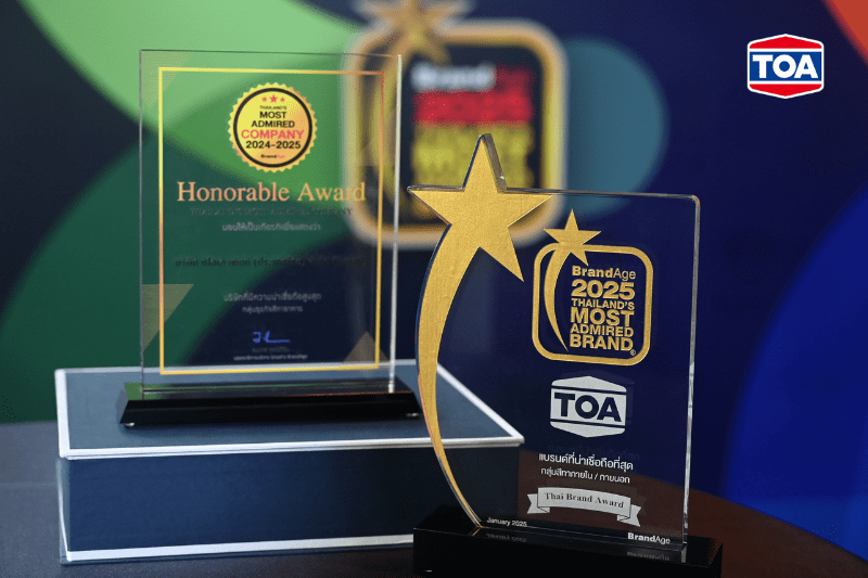 TOA แรงไม่หยุด! กวาดเพิ่ม 2 รางวัลใหญ่แห่งปี 2025 ‘Thailand’s Most Admired Company & Brand 14 ปีซ้อน’ ย้ำแชมป์เจ้าตลาดสีเบอร์ 1 ครองใจมหาชน ที่ผู้บริโภคเลือกใช้ตัวจริง
