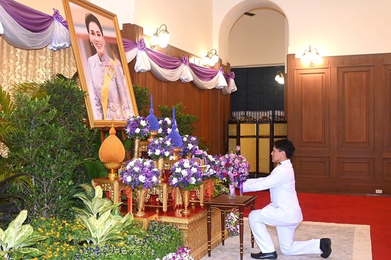 จากนั้นได้นำพนักงาน ทูลเกล้าฯ ถวายแจกันดอกไม้เบื้องหน้าพระฉายาลักษณ์ สมเด็จพระนางเจ้าฯ พระบรมราชินี และลงนามถวายพระพรชัยมงคล ณ ศาลาสหทัยสมาคม ในพระบรมมหาราชวัง